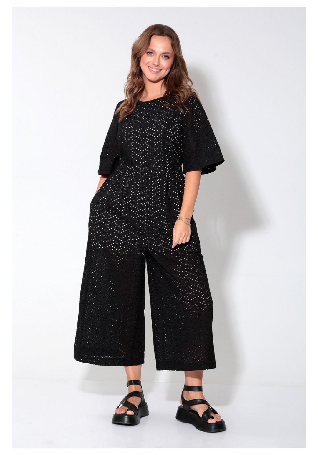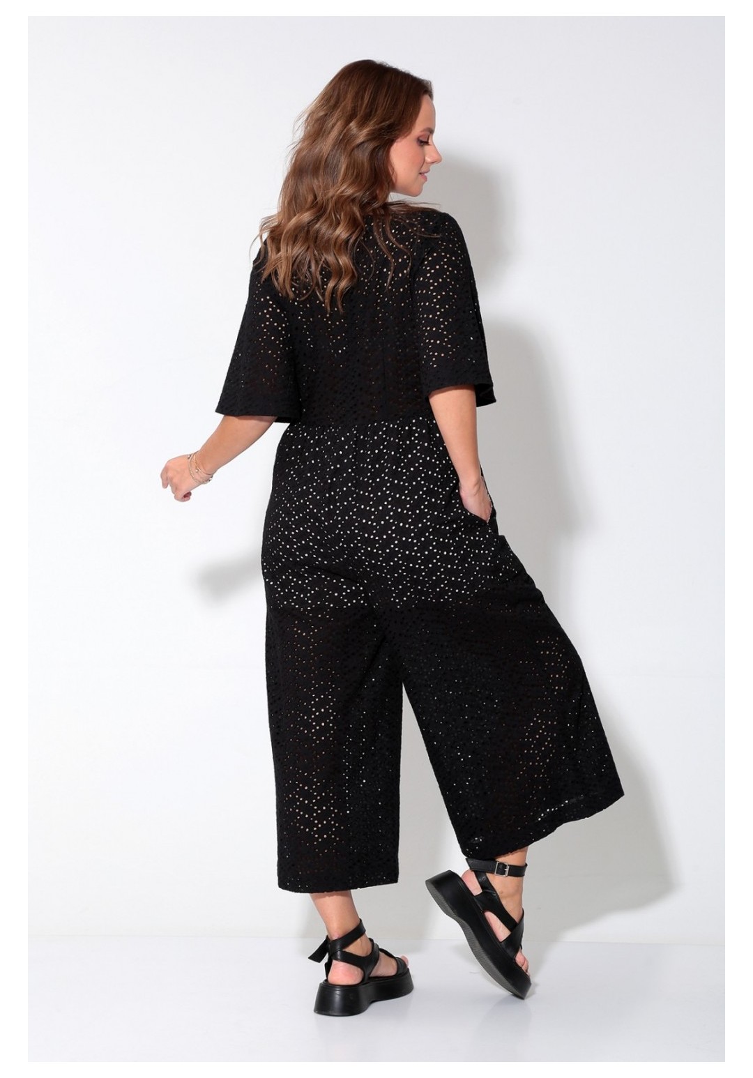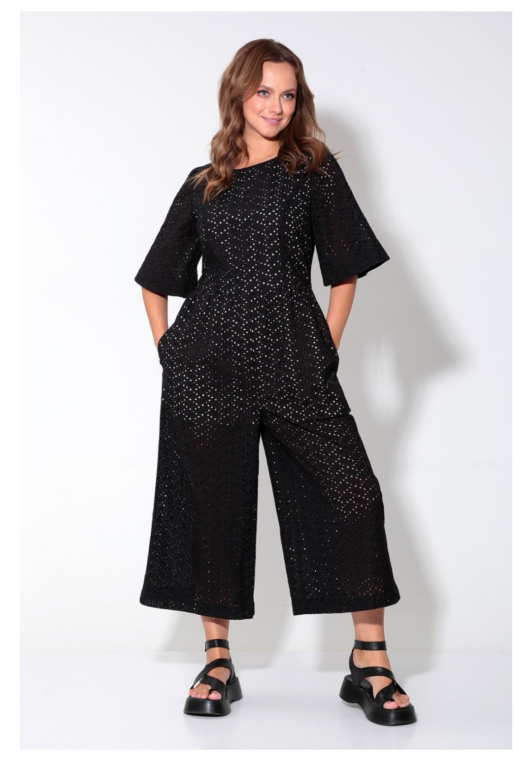 Комбинезон. Стильный женский летний комбинезон полуприлегающего силуэта, отрезной по линии талии, длиной 7/8. По переду лифа рельефные швы. Спинка со средним швом и потайной молнией. В боковых швах карманы. Рукав втачной, свободный, длиной до локтя! Подкладка 100% хлопок! Комбинезон подходит на рост 164-170 см. Длинна комбинезона от верхней точки плеча: 127 см. Длина рукава: 35см.