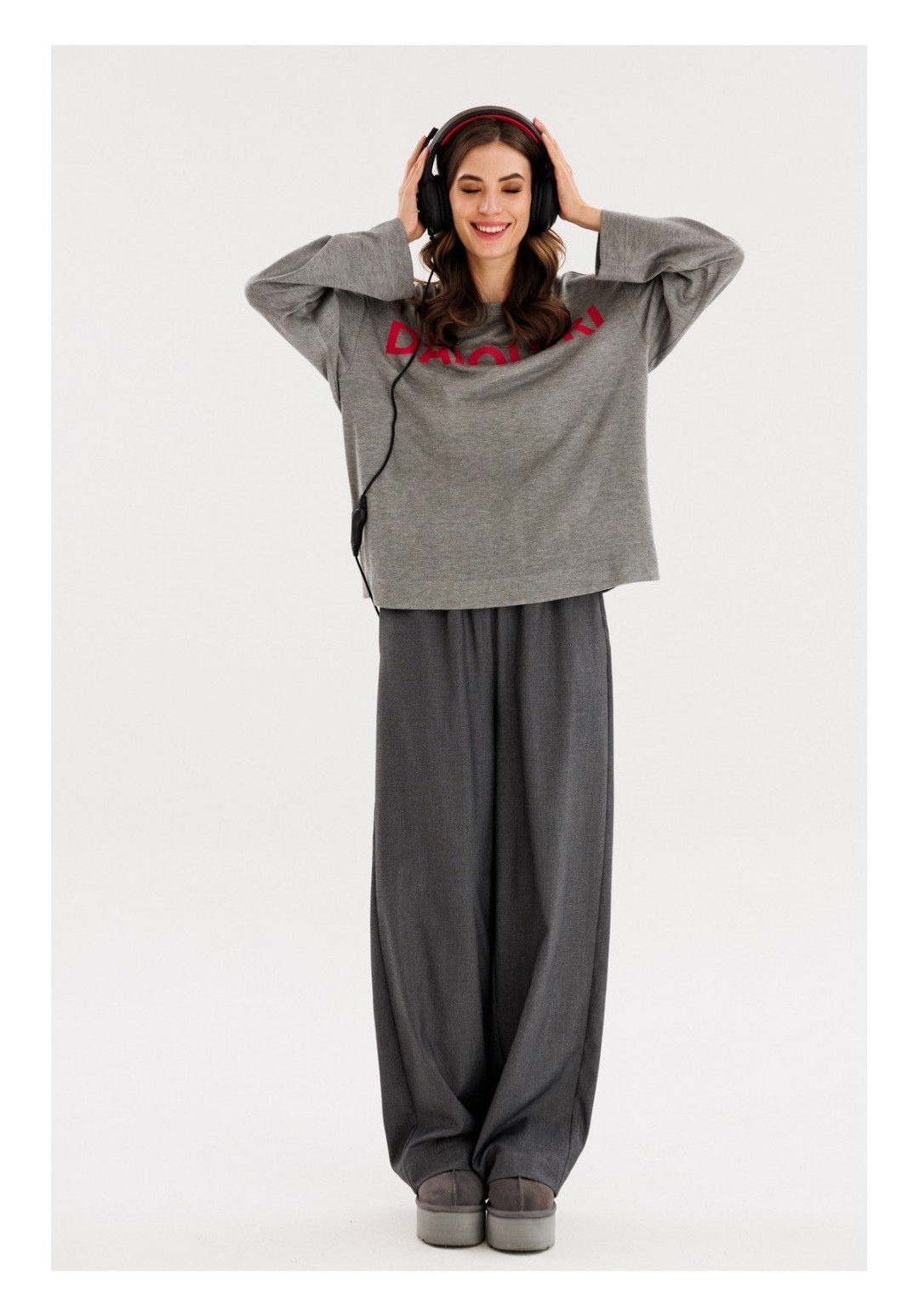 Джемпер выполнен из трикотажого полотна. Джемпер прямого силуэта, длиной выше линии бедер. Перед и спинка цельные. Горловина округлой формы, обработана бейкой из основной ткани. Плечевой шов удлинен. Рукав рубашечного покроя, одношовный. Джемпер декорирован печатью спереди. Длина джемпера: р. 44-48 - 63 см, р. 50-54 - 64,5 см. Длина рукава: р. 44-48 - 75 см, р. 50-54 - 76 см. Гарантийный срок не установлен ГОСТ 31409-2009