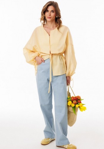 Джемпер выполнен из трикотажного полотна. Джемпер прямого силуэта, покроя oversize. Длиной до линии бедер. По переду обработана застёжка на тракторную молнию от линии груди до верха. Горловина округлой формы, обработана воротником стойкой. Плечевой шов удлинен. Рукав рубашечного покроя, одношовный. Низ рукава обработан притачной манжетой. По низу джемпера обработана эластичная тесьма с фиксаторами. Джемпер декорирован по переду кружевом, имитирующим перед топа на бретелях. Длина джемпера: р. 44-48 - 69,5 см, р. 50-54 - 70,5 см. Длина рукава от горловины: р. 44-48 - 77 см, р. 50-54 - 78 см. ДЖЕМПЕР м. 3056 44 46 48 50 52 54 Длина по центру спинки 69,5 69,5 69,5 70,5 70,5 70,5 Длина рукава от горловины 77 77 77 78 78 78 Объем по груди 134 138 142 146 150 154 Объем по талии 124 128 132 136 140 144 Объем по низу 110 114 118 122 126 130 Объем рукава вверху 42 44 46 46 48 50 Объем рукава внизу 21,5 21,5 21,5 23,5 23,5 23,5