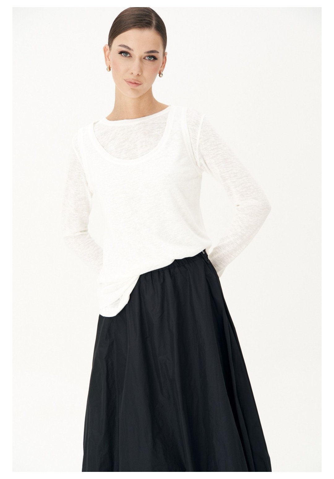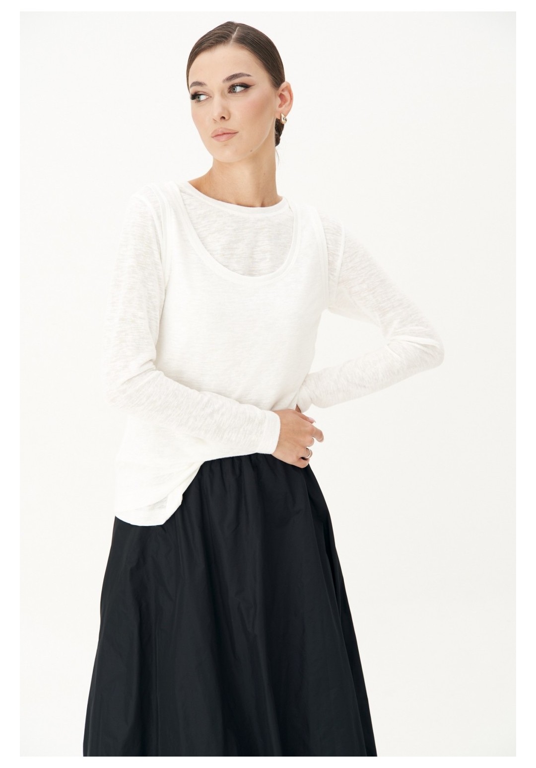 Лонгслив - это идеальное решение для создания расслабленных образов на каждый день простых нарядов на выход, а сочетание его с майкой из того же полотна-простой и элегантный вариант, чтобы сделать образ еще более интересным. Полуприлегающий силуэт, втачной покрой, круглая горловина, длинный зауженный рукав. Майка полуприлегающего силуэта с углубленной круглой горловиной. Длина лонгслива около 60 см Длина рукава около 60 см. Длина майки около 56 см.