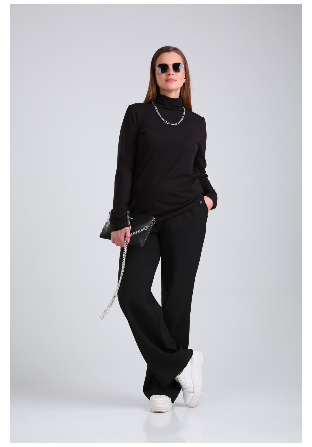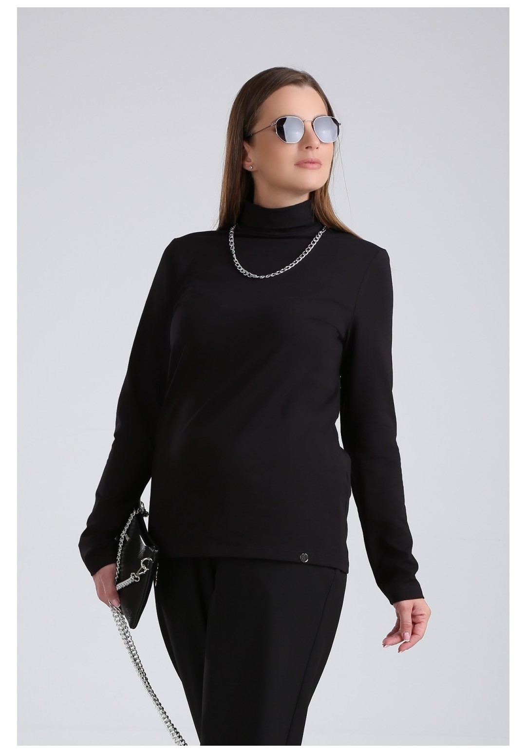 Джемпер прямого кроя, с воротником стойка.Длина изделия по переду от плеча 70 см.Длина рукава 65 см.Высота воротника 10 см.