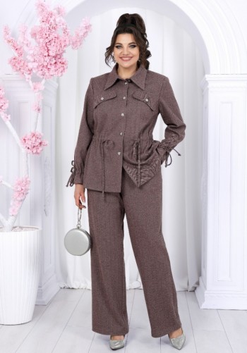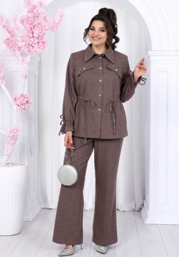 Джемпер женский полуприлегающего силуэта с длинным рукавом-реглан, низ рукава на резинке, по полочке и спинке выполнены разрезы и заложены складки. Горловина застегивается на петлю-пуговицу. По низу джемпера завязка.