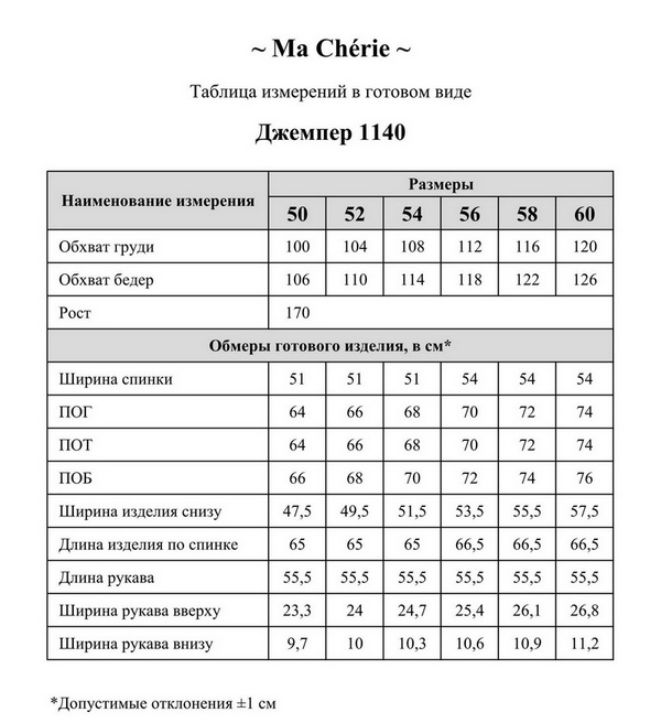 Длина изделия 65-66,5 см в зависимости от размера, длина рукава 55,5 см.