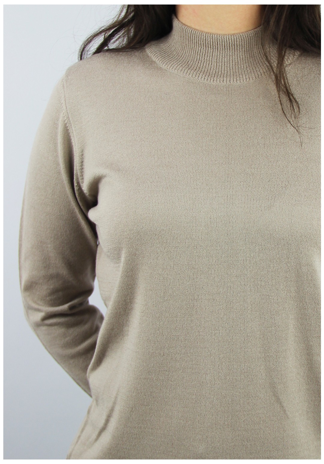 Свитер регулярный полуприлегающего силуэта с длинным втачным рукавом. Воротник - двойная стойка высотой в гот. виде 6,0+-0.5 см.