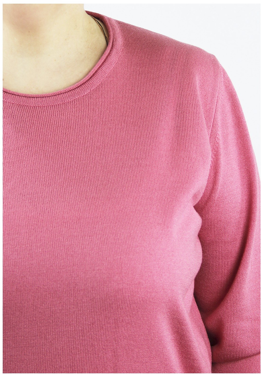 Джемпер прямого силуэта с длинным втачным рукавом, второго слоя одежды. Круглый вырез горловины закеттлеван бейкой 1,5+-0,2 см. (чулочек+закручивающий край). Низ изделия и рукавов заработан ластиком 1х1.