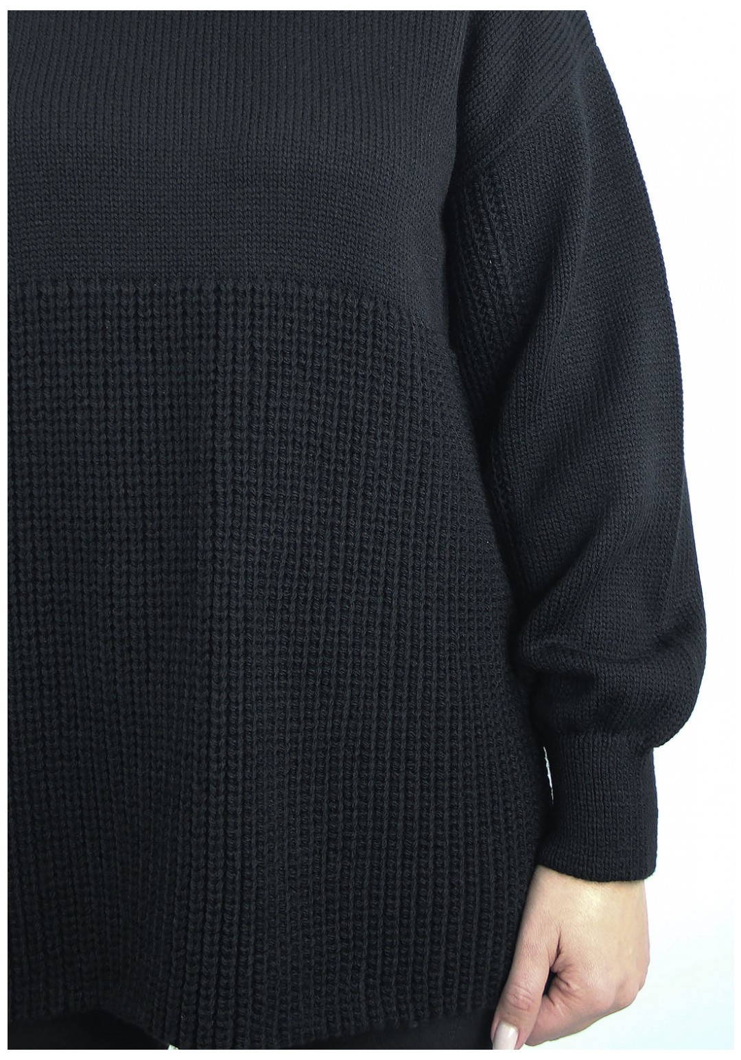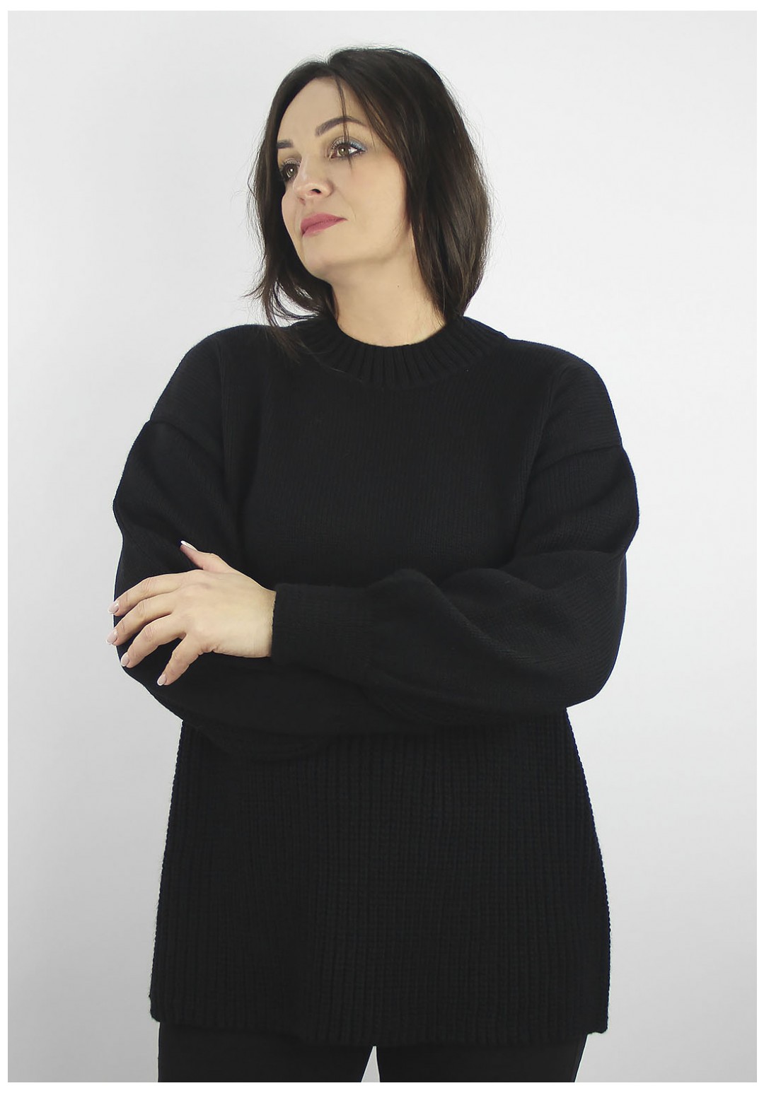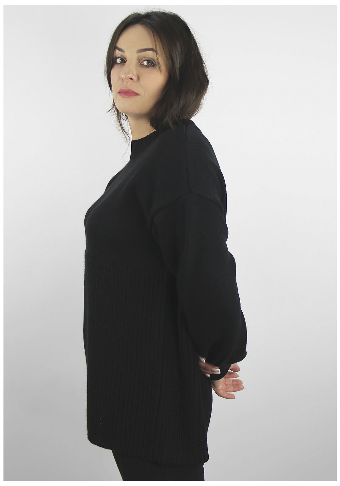 Джемпер второго слоя одежды, регулярный.  Прямого силуэта, со спущеной линией плеча с рубашечным рукавом. Круглый вырез горловины обработан одинарной бейкой