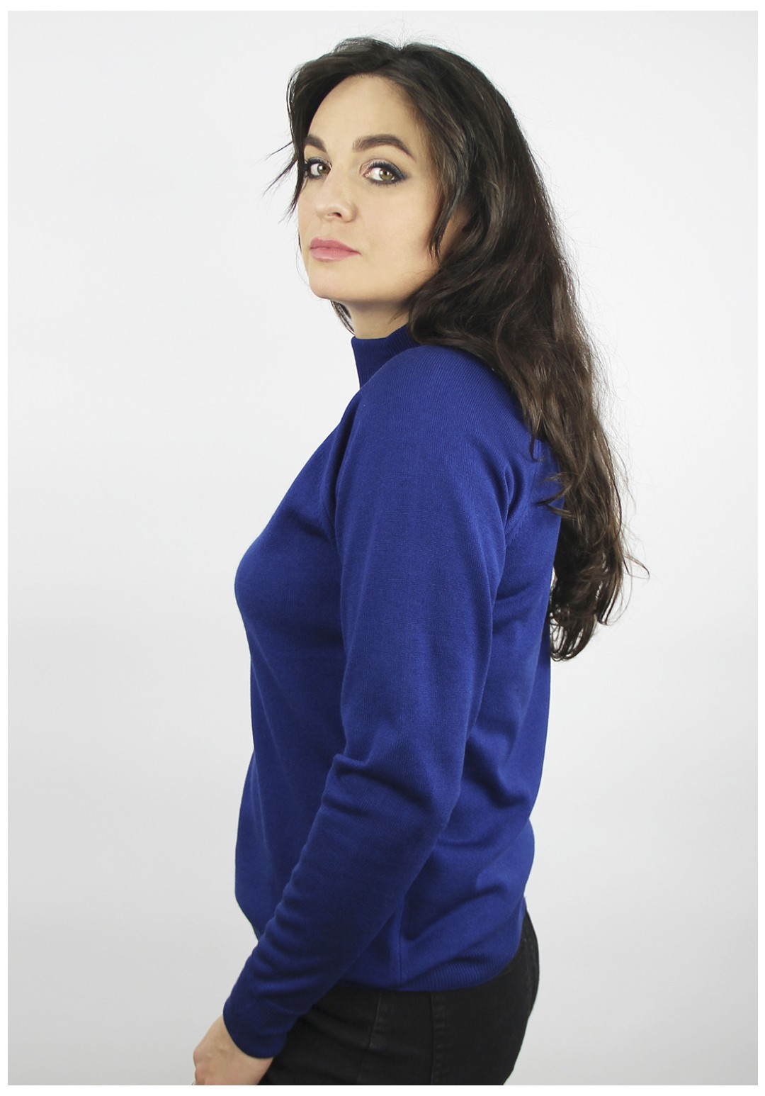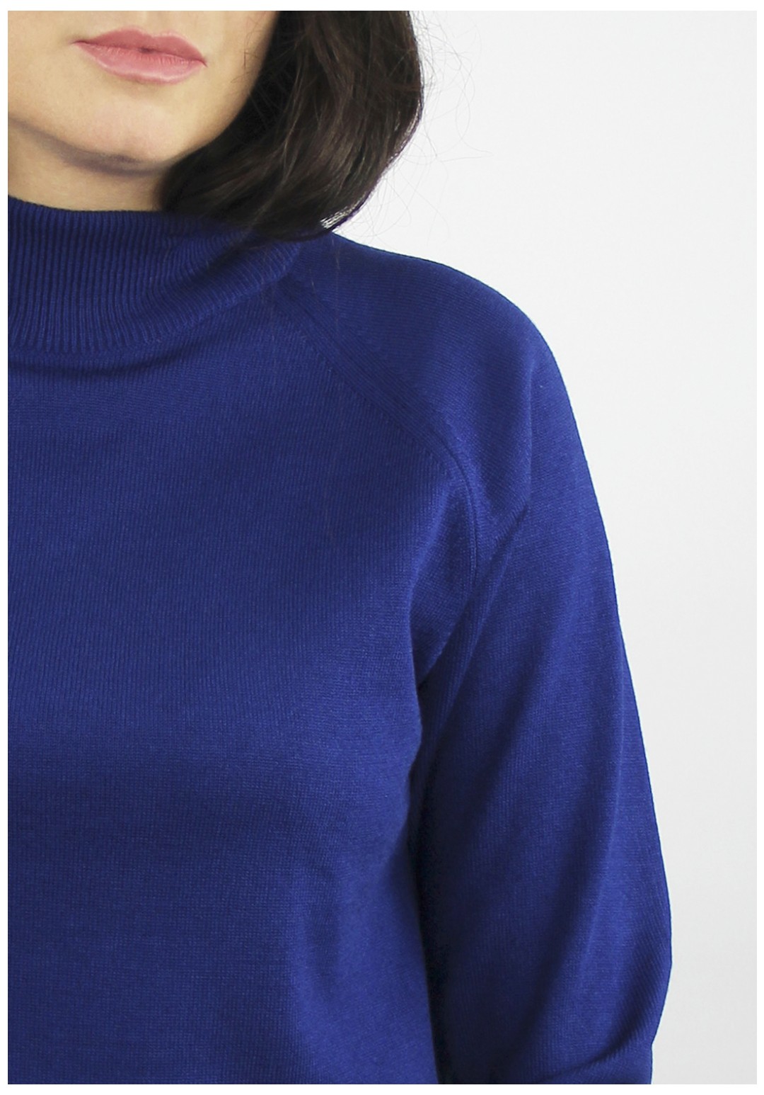 Свитер прямого силуэта с длинным рукаом "реглан". Низ изделия и рукавов  заработан ластиком 1х1.  Воротник - двойная ластичная стойка.