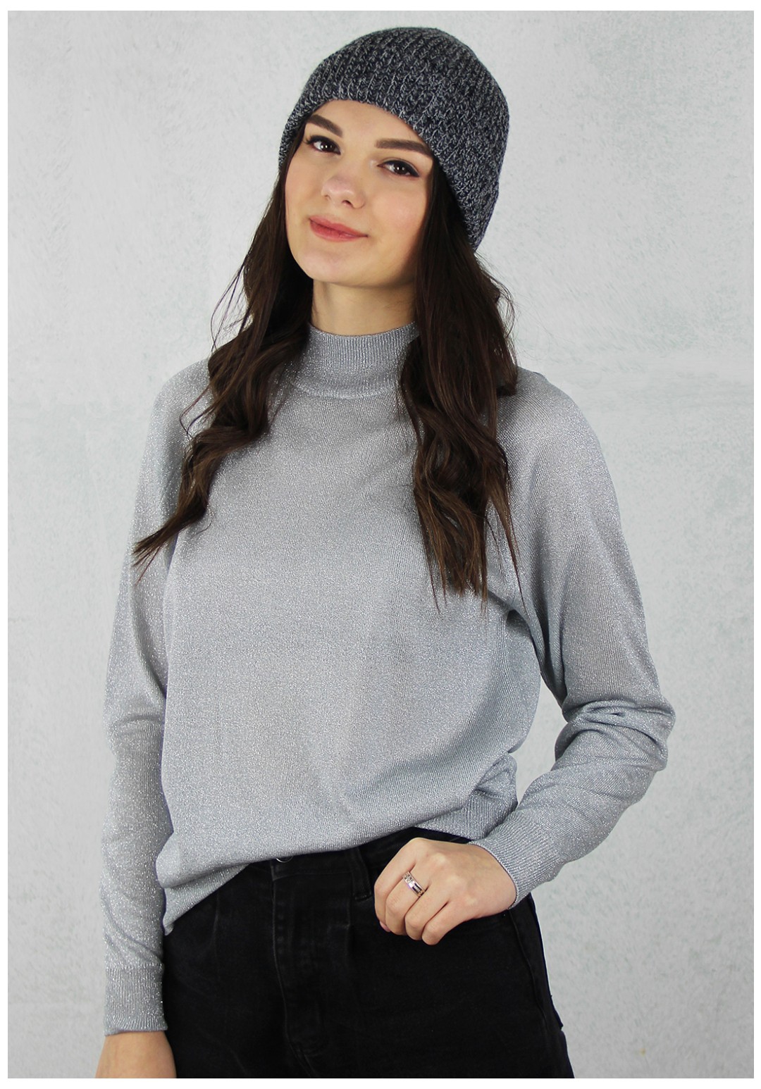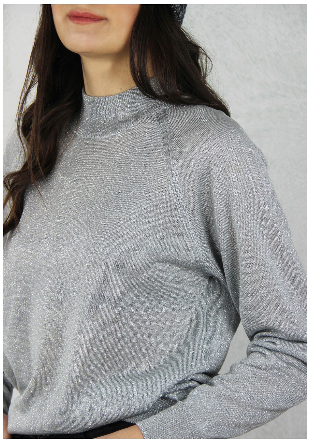 Свитер прямого силуэта с длинным рукаом "реглан". Низ изделия и рукавов заработан ластиком 1х1. Воротник - двойная ластичная стойка, полукеттлевка.