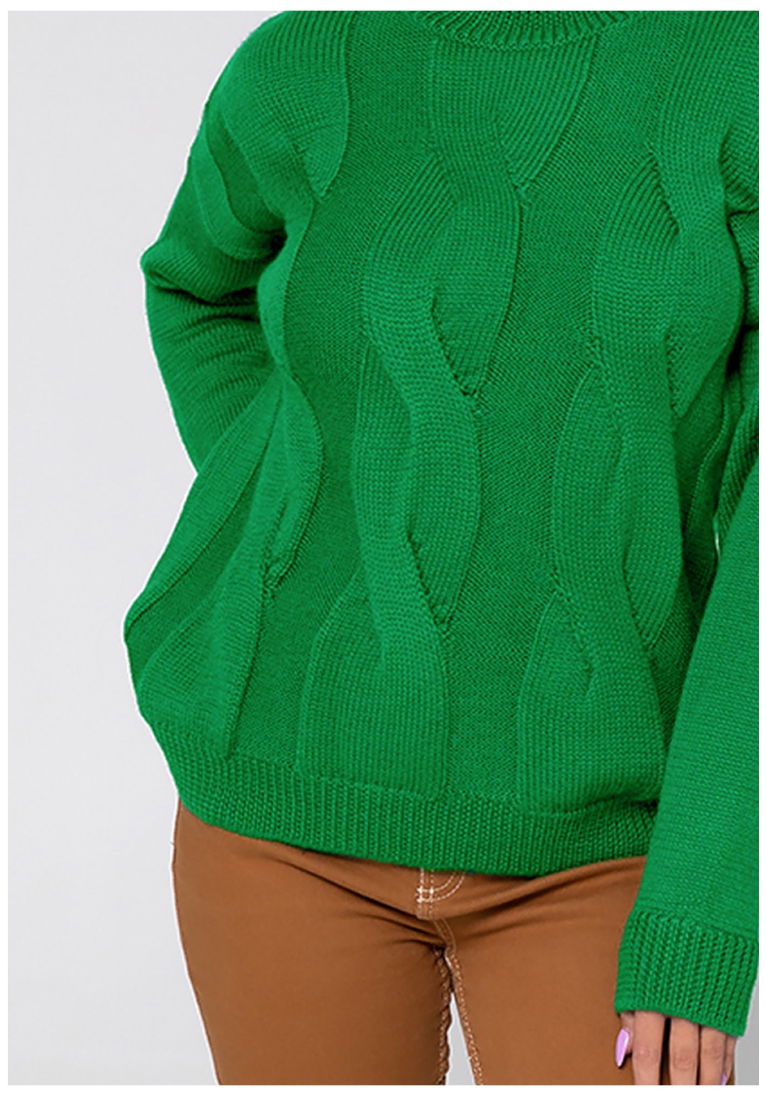 Женский, уютный, мягкий, базовый джемпер прямого силуэта. Изготовлен из высококачественной дышащей пряжи, цвета не линяют, легкий в уходе. Свободный и эргономичный крой. Модель oversize (оверсайз), спущенная линия плеча. Приятный на ощупь. Горловина-стойка - стильная изюминка и трендовый элемент этого джемпера. Широкие косы визуально вытягивают силуэт. Подойдет как для офиса, так и для прогулок с друзьями. Носи его с классическими брюками и брюками палаццо, джинсами, юбками и шортами. Дополни образ сумкой и ботинками.