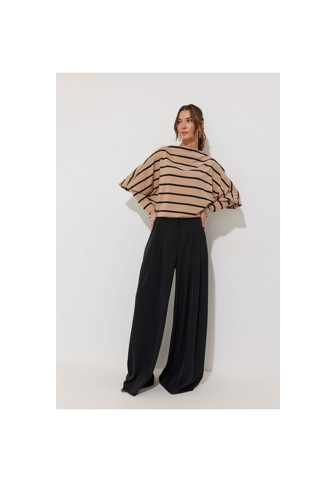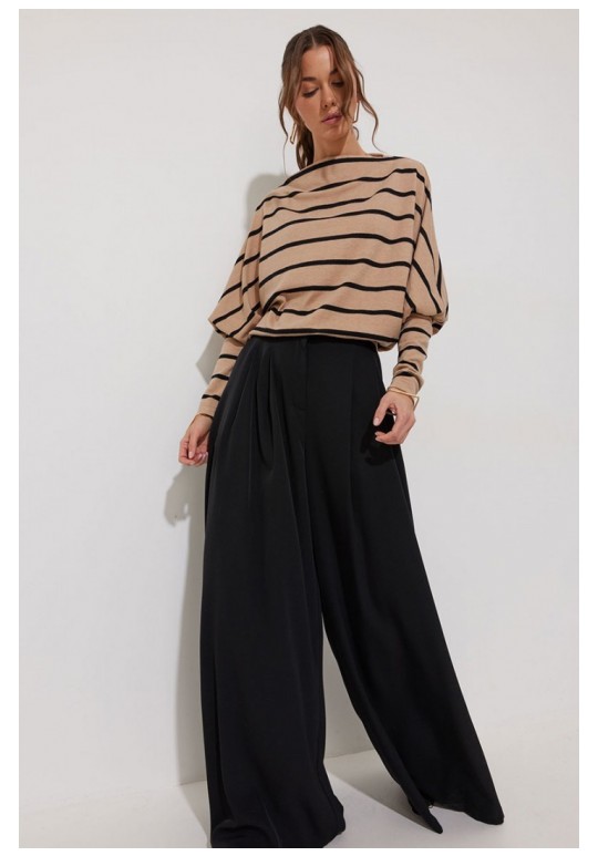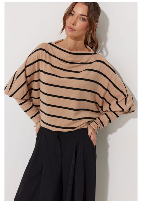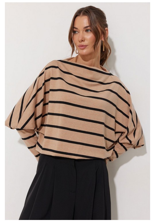 Джемпер полуприлегающего силуэта из трикотажного полотна. Горловина - цельнокроеная стойка. Рукав цельнокроеный, с подрезом ниже локтя и узкой длинной манжетой. По низу джемпера – притачная планка. Подходит на рост 164-170 см. Длина джемпера (44-48р – 61см)(50-54р - 69см). Длина рукава от горловины (44-48р – 76см)(50-54р - 77см).