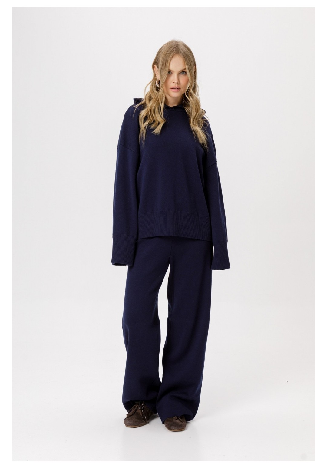 Вязаное свободное худи из хлопковой пряжи