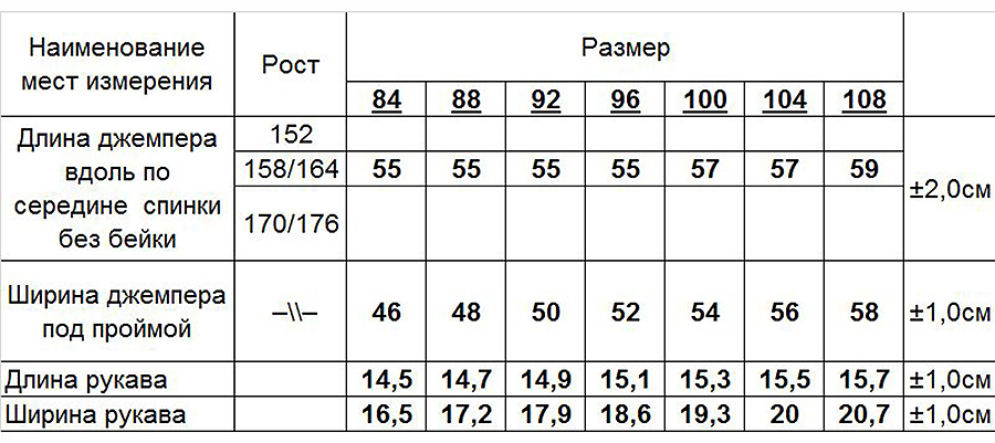 Таблица размеров
