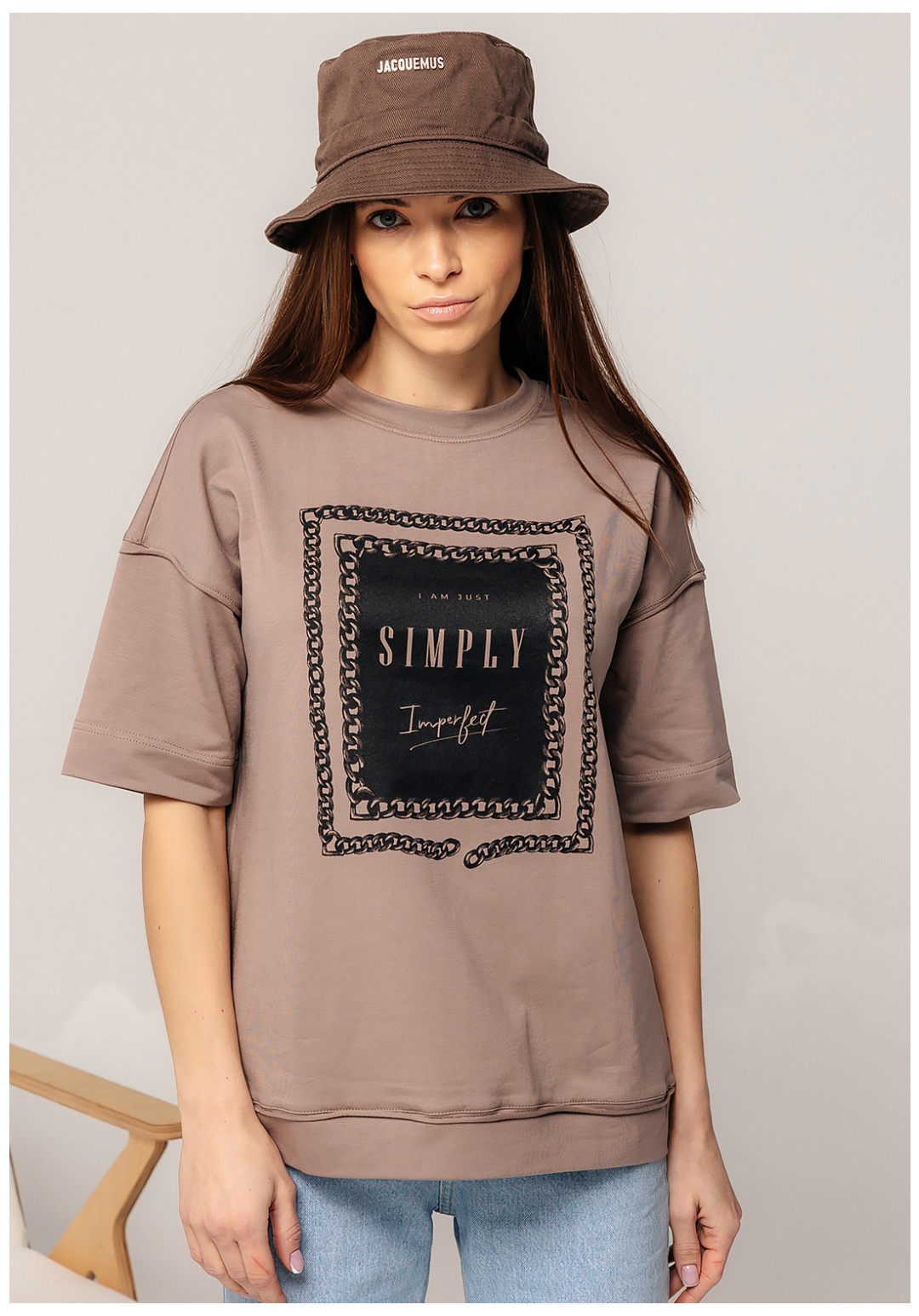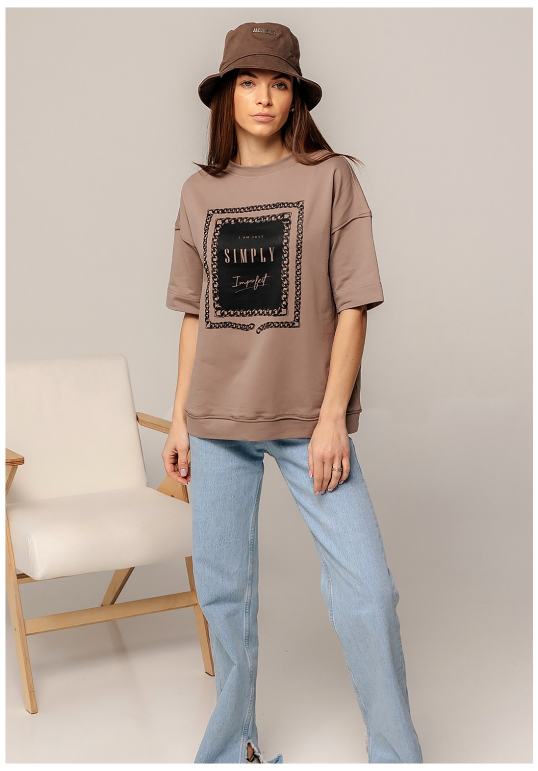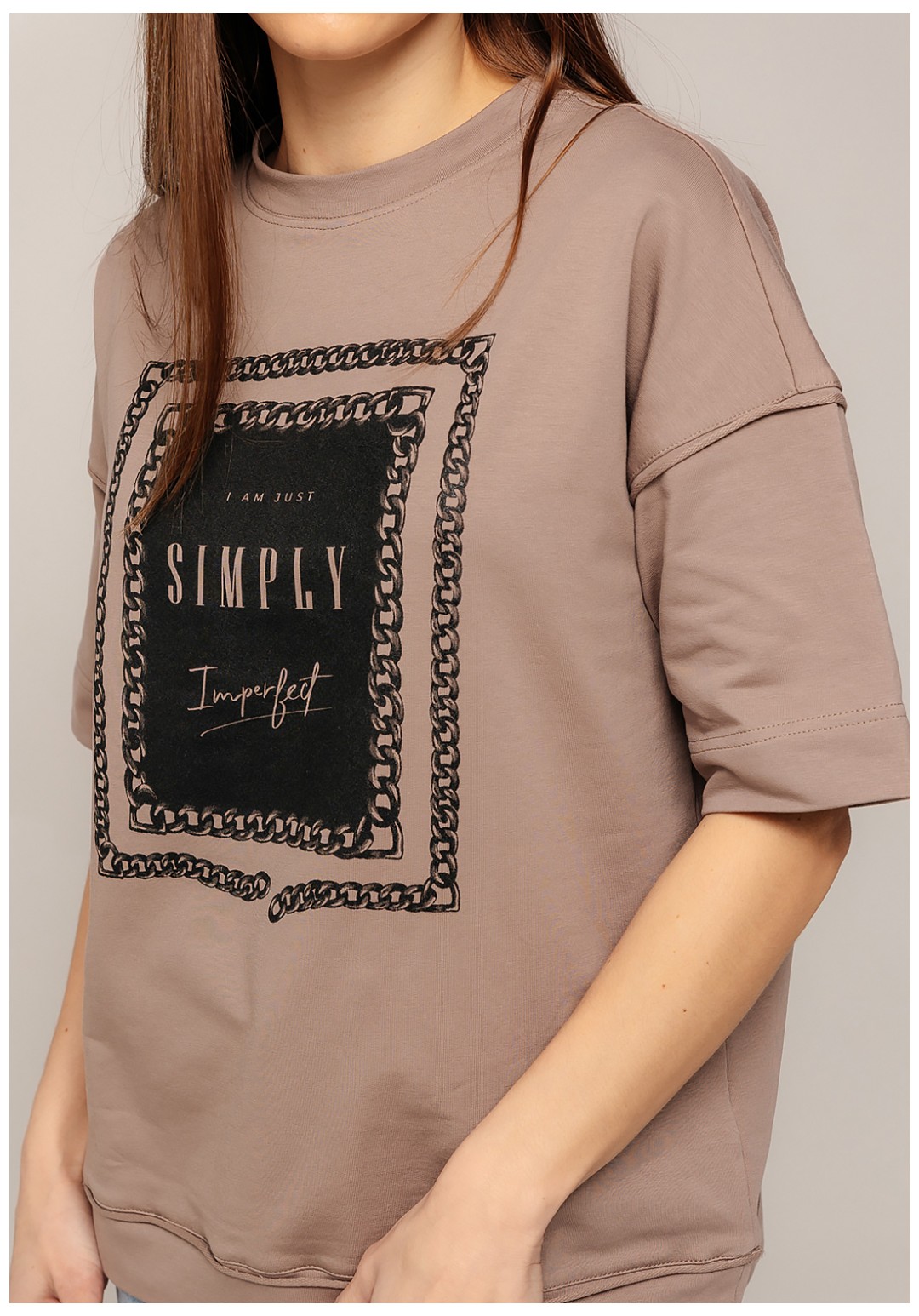 Базовая женская футболка с коротким рукавом силуэта оврсайз с круглым вырезом и принтом - трендовая модель. Мягкий дышащий материал, удобное лекало, эргономичный крой. Выполнена из плотного, мягкого и приятного к телу хлопка. Не просвечивает и сохраняет форму. Лаконичный и стильный принт, сделает ваш образ более интересным. Даже после множества стирок цвет изделия сохраняется. Рекомендации по уходу: Стирать с вещами похожего цвета и вынимать сразу после стирки. Гладить с изнаночной стороны. Обязательно ознакомьтесь с инструкцией на вшивной ленте. Важная информация! Фото товара сделано при искусственном освещении студии. При естественном освещении цвета могут иметь другие оттенки.