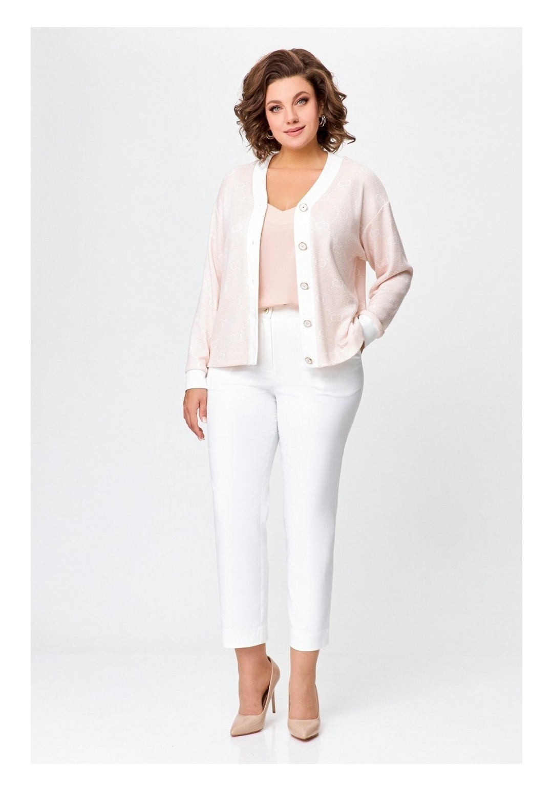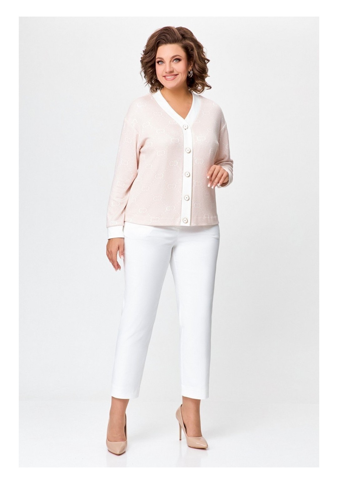 Джемпер женский из мягкого трикотажного полотна. Джемпер прямого силуэта с центральной бортовой застёжкой Спинка цельнокроеная с отрезной кокеткой из отделочного материала по горловине. По переду обработана отрезная планка из отделочного материала с фигурной V-образной горловиной, которая застёгивается на пять пробивных петель и пять декоративных пуговиц. Рукав спущенный, втачной, одношовный с манжетой из отделочного материала. Длина изделия 50,52,54 размер - 57 см. (±1 см). Длина изделия 56,58,60 размер - 60 см. (±1 см). Длина изделия 62,64,66 размер - 63см. (±1 см). Цвет изделия может отличаться по тону в зависимости от настроек вашего монитора.
