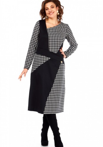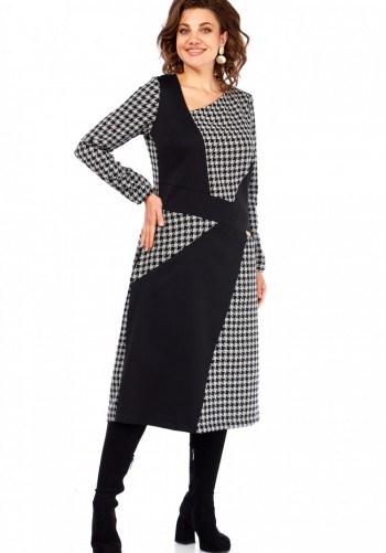 Джемпер из тонкого вискозного эластичного полотна. По переду нагрудные выточки, спинка с центральным швом. Горловина круглая, спереди обработана обтачкой с декоративным кантом. Рукав втачной, длинный. Длина по спинке – 61 (+/-1) см. Длина рукава – 58 см.