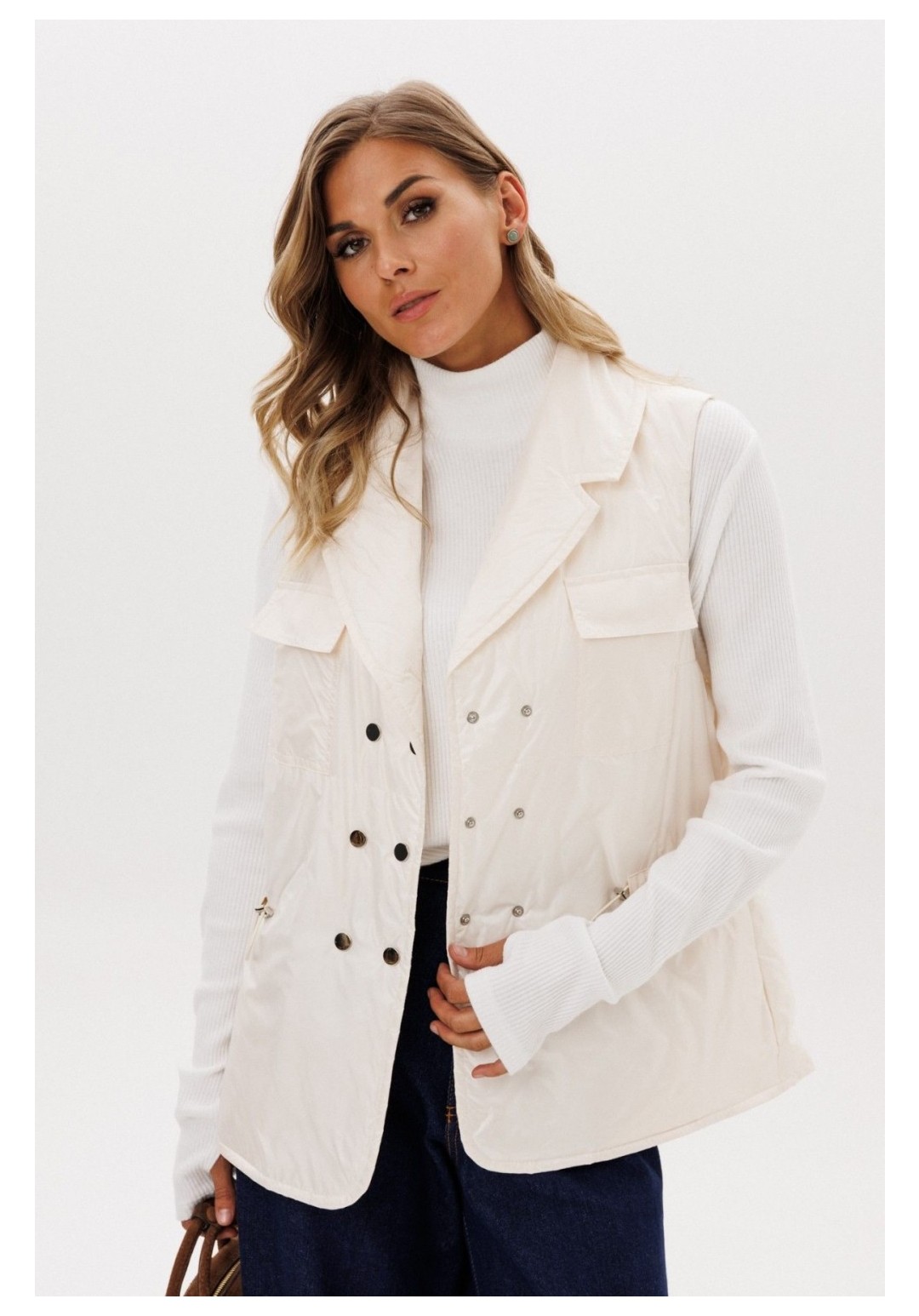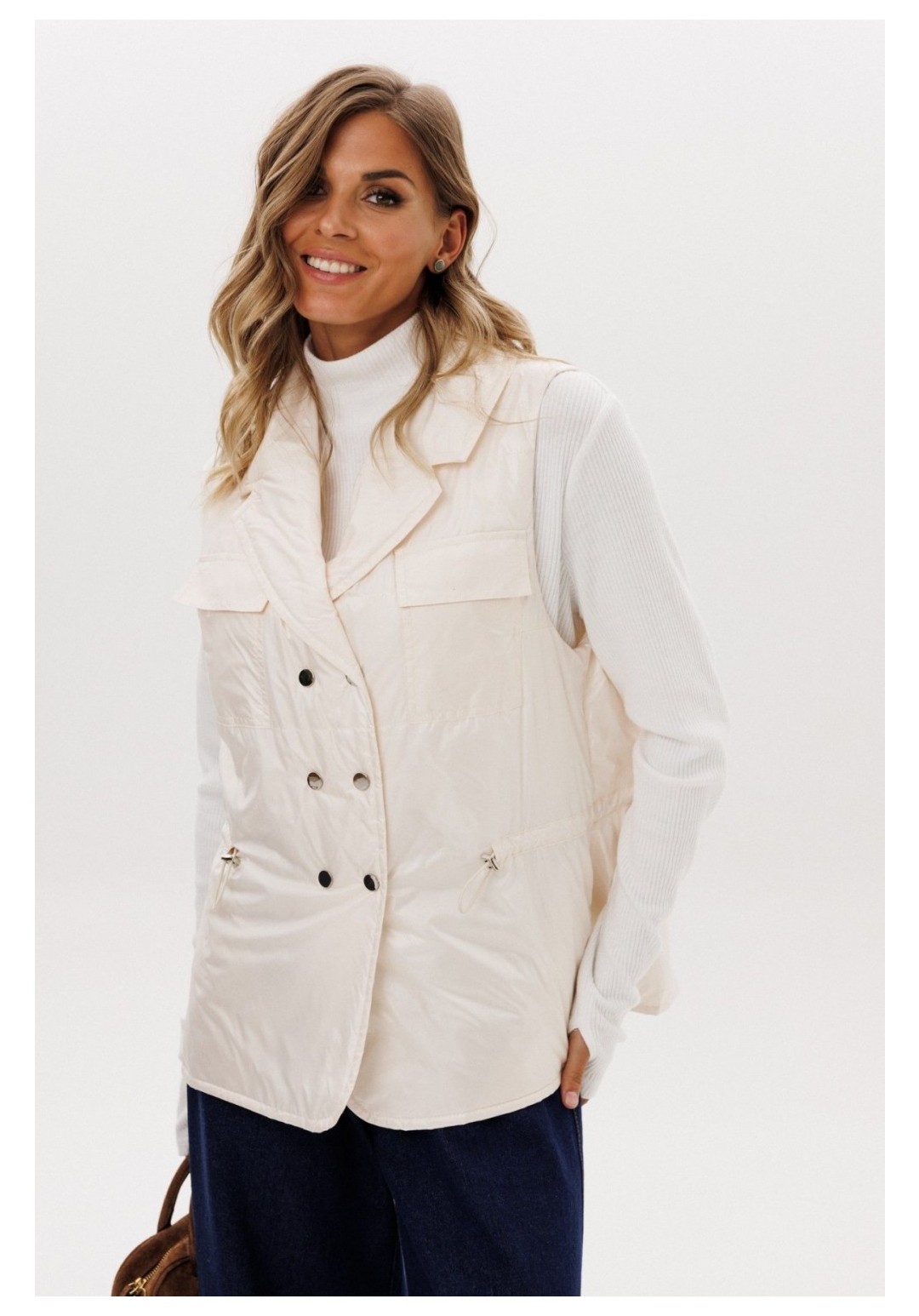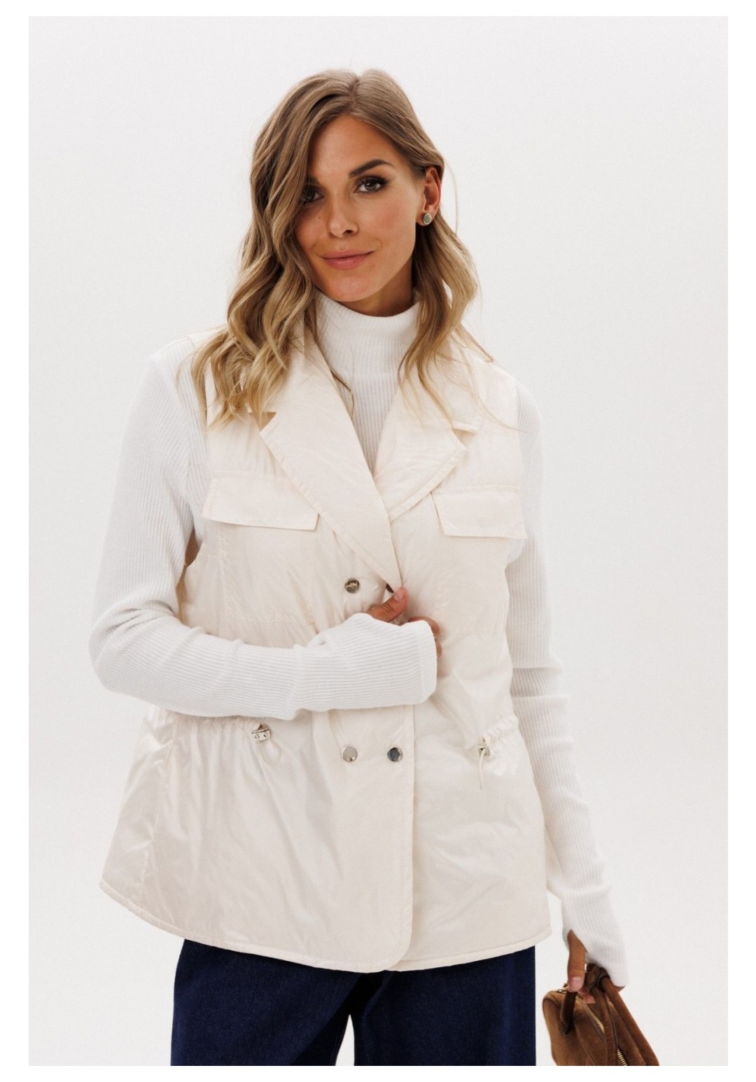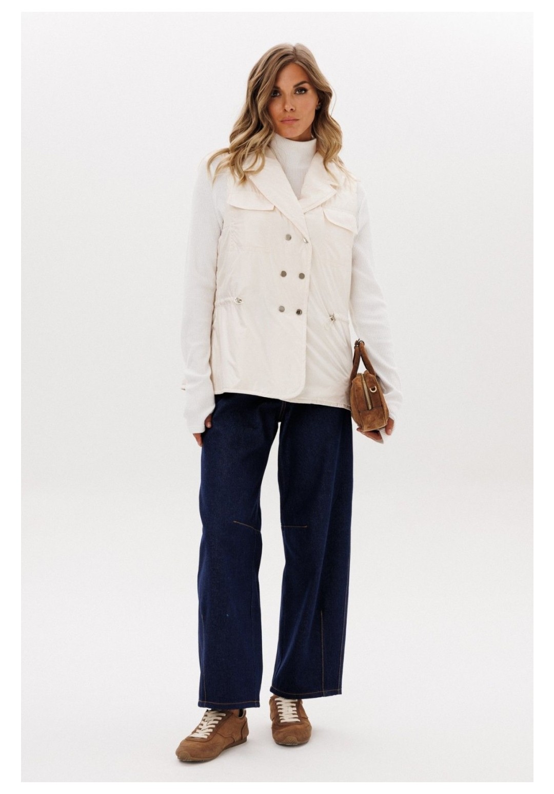 Жилет выполнен из плащевой ткани с утеплителем Isosoft. Жилет полуприлегающего силуэта, длиной до линии бедер. Застежка спереди центральная двубортная на пробивные кнопки. Спереди лацканы, накладные нагрудные карманы с клапанами и боковые карманы в швах. Спинка цельная. Воротник пиджачного типа. По линии талии настрочена кулиса, в которой протянута эластичная тесьма с фиксаторами. Жилетка на подкладке из основной ткани. Температурный режим: от 0 до +10 С. Длина жилета по центру спинки: р.44-48 - 67 см, р.50-54 - 69 см. ЖИЛЕТ м. 2949 44 46 48 50 52 54 Длина по центру спинки 66,5 66,5 66,5 68 68 68 Длина рукава от горловины Объем по груди 104 108 112 116 120 124 Объем по талии 1102 106 110 114 118 122 Объем по низу 118 122 126 130 134 138