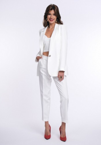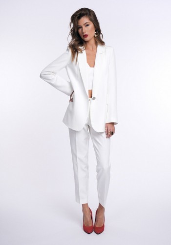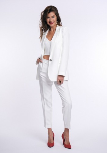 Жилетка женская умеренного объема полуприлегающего силуэта. Перед с талиевыми вытачками и имитацией карманов с листочкой. Спинка с талиевыми вытачками. Жилетка на притачной подкладке. Застежка центральная, на прорезные петли и пуговицы. Длина жилетки до уровня линии бедер. Длина - 68 см.